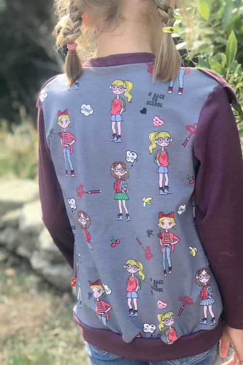 Pour le rendre plus féminin et porter l’oeil sur les découpes du devant, j’ai simplement inséré un croquet coloré dans la couture du volant.