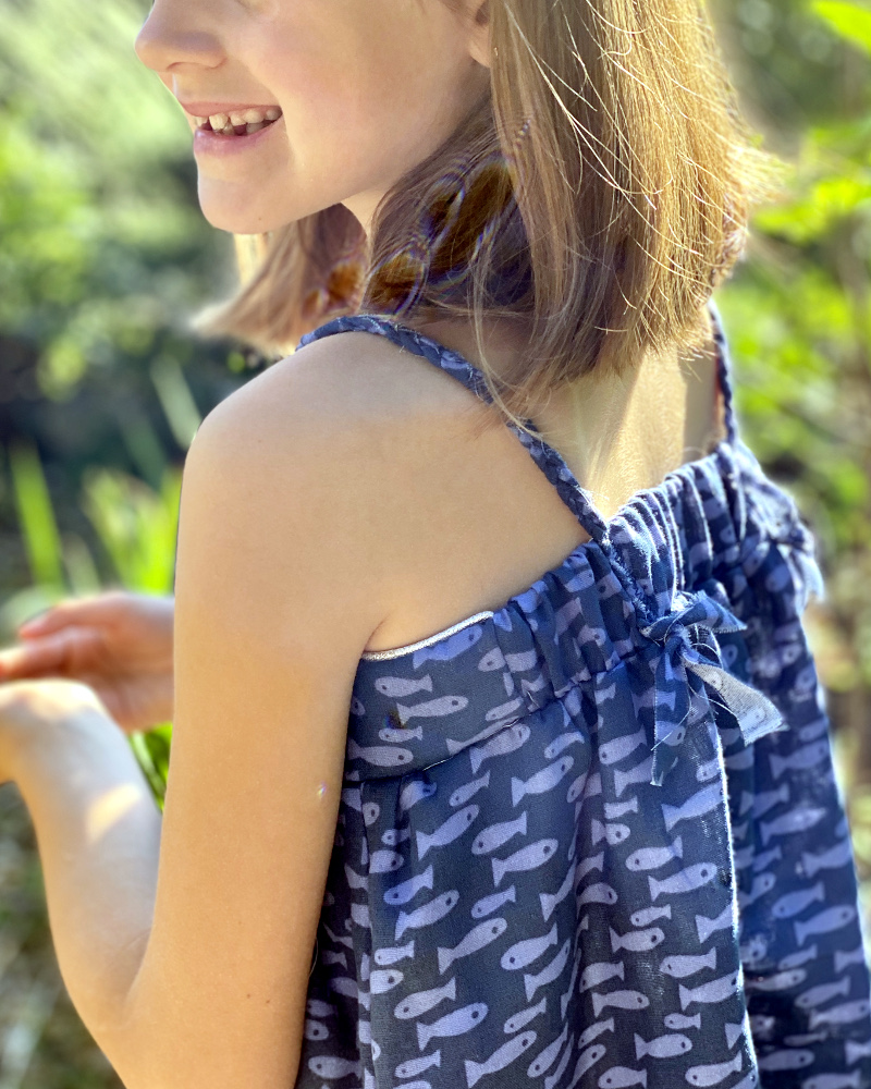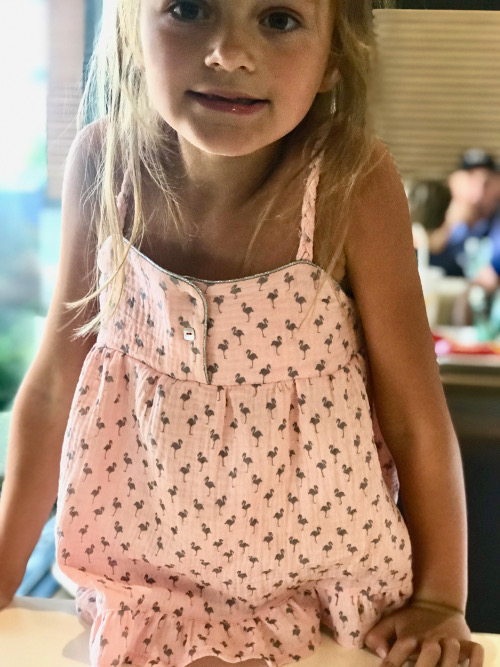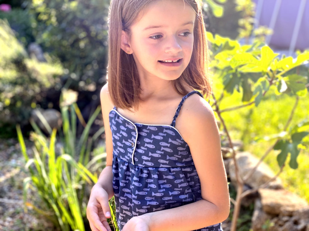 Afin de vous donner une idée, Romy mesure 1,36m pour 6ans, oui elle est grande….. je lui ai coupé la taille 134 du patron Pdf.
