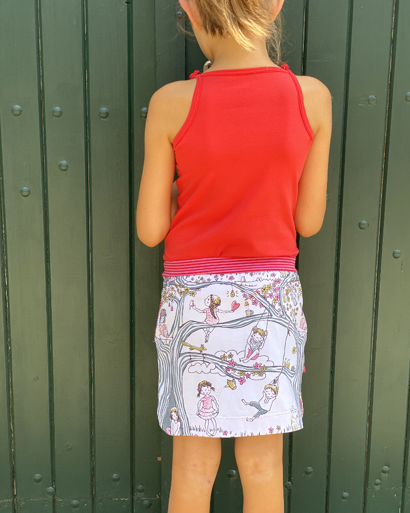 – Des fentes arrondies sur les côtés pour ne pas entraver les gambettes de nos fillettes.