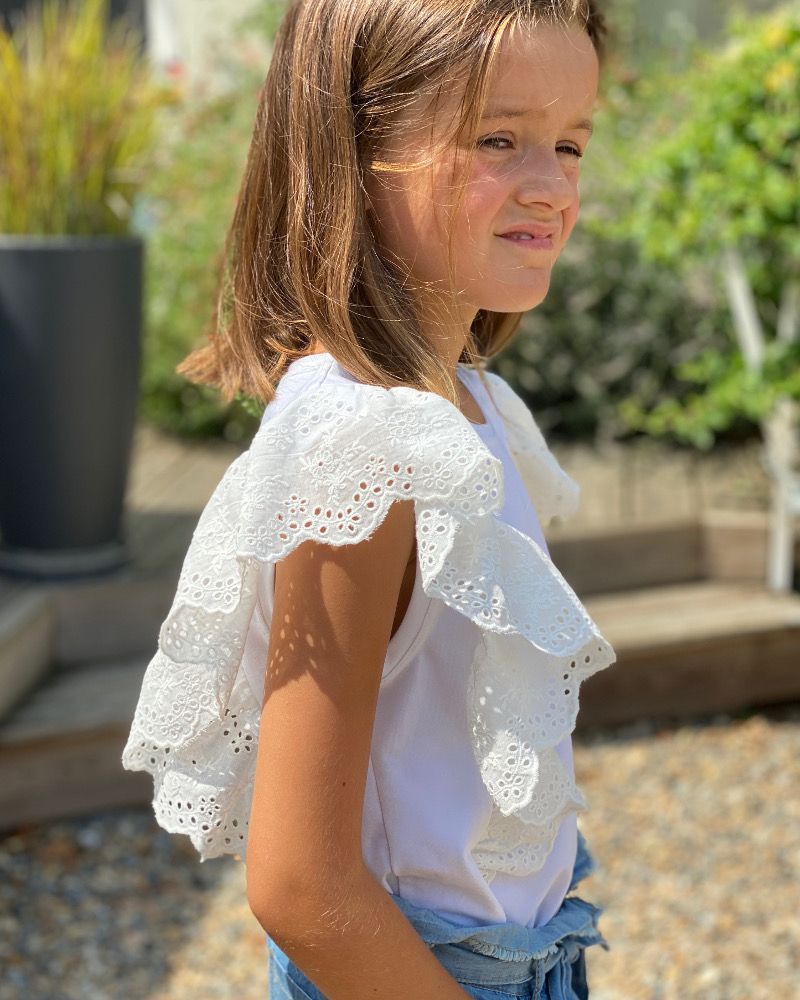 – modèle Ecru : le volant en broderie anglaise que vous achèterez en bande.